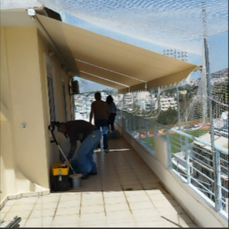 Τοποθετούμε δίχτυα και σε ρετηρέ, δηλαδή μπαλκόνια χωρίς οροφή (π.χ. τα μπαλκόνια στον τελευταίο όροφο μιας πολυκατοικίας).